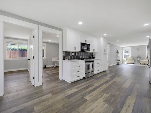 Gorgeous Custom Remodeled Home in Puyallup! Amazing Layout: 3 Beds and 2 Bathrooms, plus open galley kitchen, dinning room, living room, and family room. Luxury updates include: LVP Flooring and extensive use of recessed lighting throughout, custom-built white painted cabinetry in kitchen, bathrooms, and closets. Bathrooms with white custom cabinets and quartz counters, with white subway tile. NEW Windows, Insulation, Electrical, Plumbing, Drywall, Paint, White Millwork, Doors, Tankless Hot Water, Ductless Mini-Split for Heat/AC. Kitchen with White Custom Cabinets, Quartz Counters, Tile Backsplash, Under Cab Lights, Stainless Sink, Stainless Steel/Black Appliances including Gas Range & French Door Fridge. Fully Fenced Corner Lot with an Abundance of Parking enough for a RV. Shed/Patio backs to Open Space.